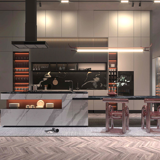公司用欧洲E0级环保板材,涵盖实木橱柜柜、衣柜、衣帽间、榻榻米、儿童房、书柜、酒柜、厅柜等八大系列上百种产品。公司集产品设计、生产、销售及服务于一体,真正做到一站式品类全屋定制家居公司。
